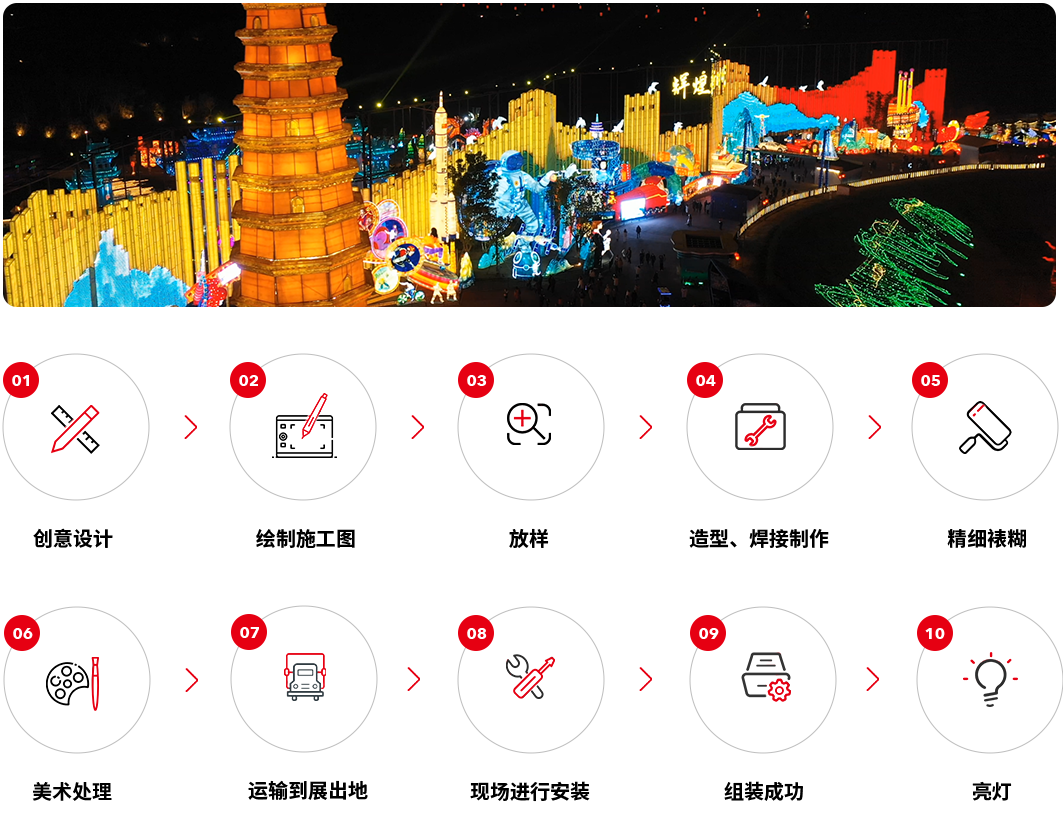 公司的專業(yè)管理團隊擁有30余年管理經(jīng)驗,有成熟的燈會全產(chǎn)業(yè)鏈服務(wù)體系,從事包括燈會選址、彩燈設(shè)計、制作、運輸、安裝、展出、守展、銷售、運營等全產(chǎn)業(yè)鏈業(yè)務(wù)內(nèi)容。